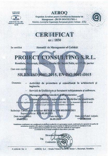 - Sistemul de managment al calitatii SR EN ISO 9001:2008, EN ISO 9001:2015 si
